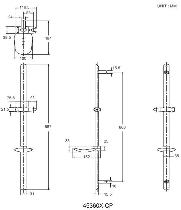 ชุดราวเลื่อนทรงรียาว 60ซม. K-45360X-CP KOHLER B63335
