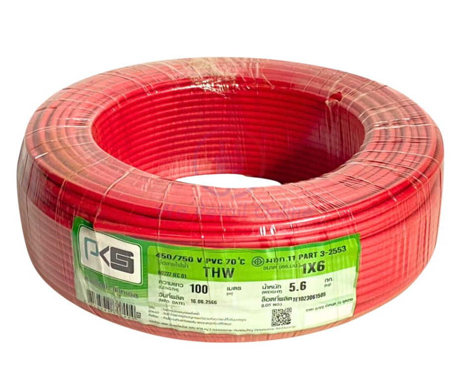 สายไฟ PKS THW 1 6 mm. สีแดง (เมตร) E63733