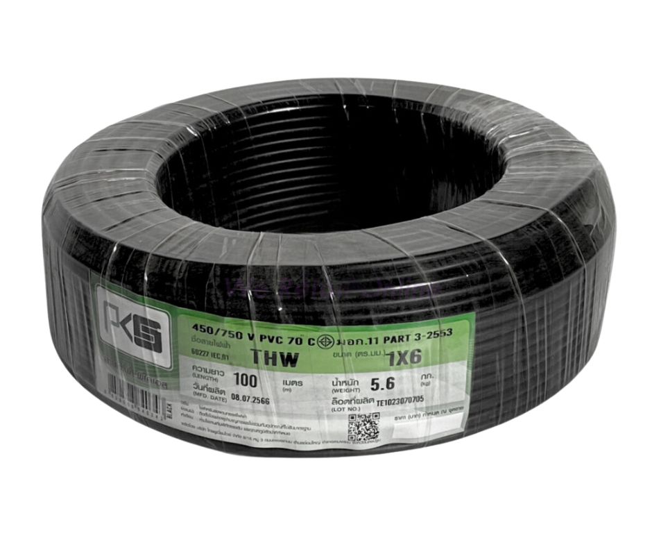 สายไฟ PKS THW 1 x 6 mm.สีดำ (100m./ม้วน) E63736
