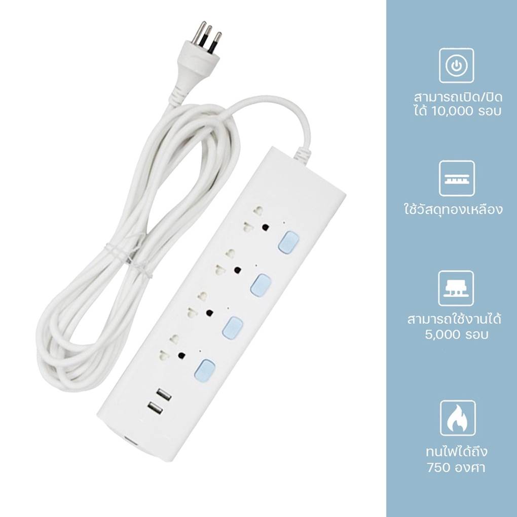 – ปลั๊กไฟ 3 ช่อง (3 เต้ารับ) ความยาวสายไฟ 3 เมตร จากฐานปลั๊ก พร้อมสายไฟมาตรฐาน 3 เส้ยภายใน + สายกราวด์จริง มาตรฐาน มอก.
