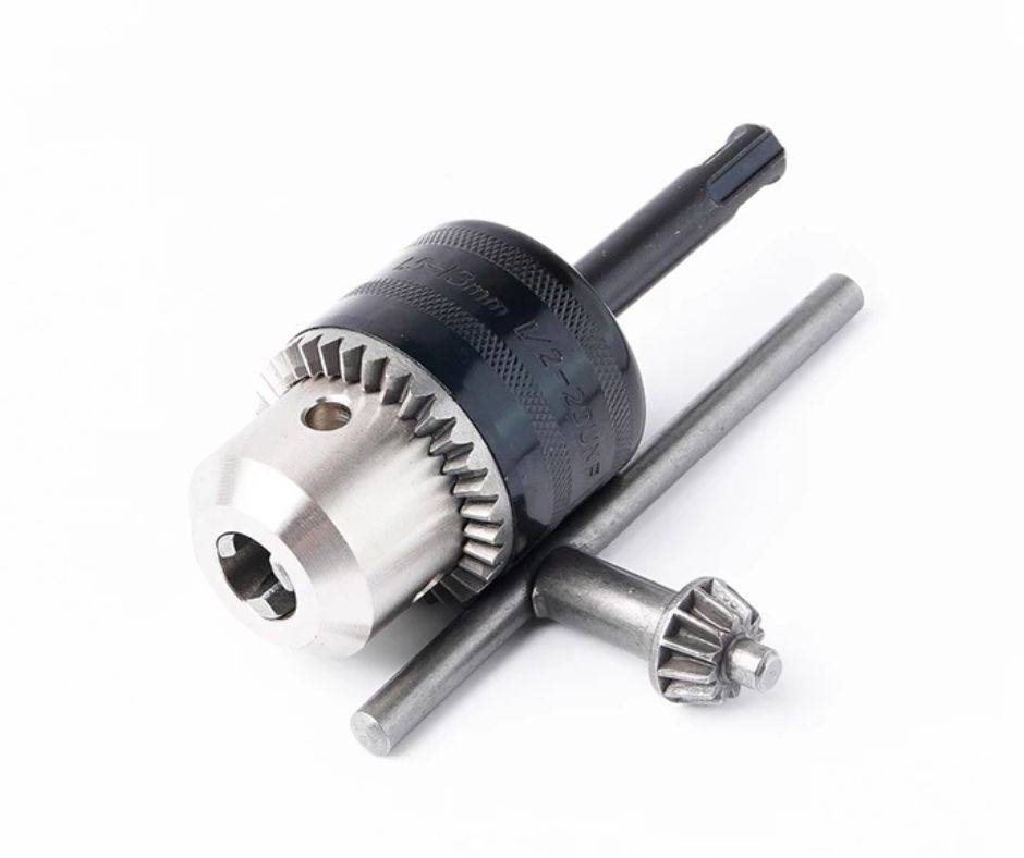 - หัวสว่านมาพร้อมกับแกนอะแดปเตอร์ SDS-PLUS และจำปาขัน