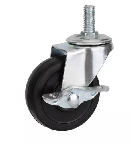 - ลูกล้อยางดำ แบบมีเบรค ไม่ยุบตัว เหมาะสำหรับงานเฟอร์นิเจอร์ รถเข็น หรืองานทั่วไป ใช้งานลื่นด้วยระบบลูกปืน 2 ชั้นที่คอล้อ