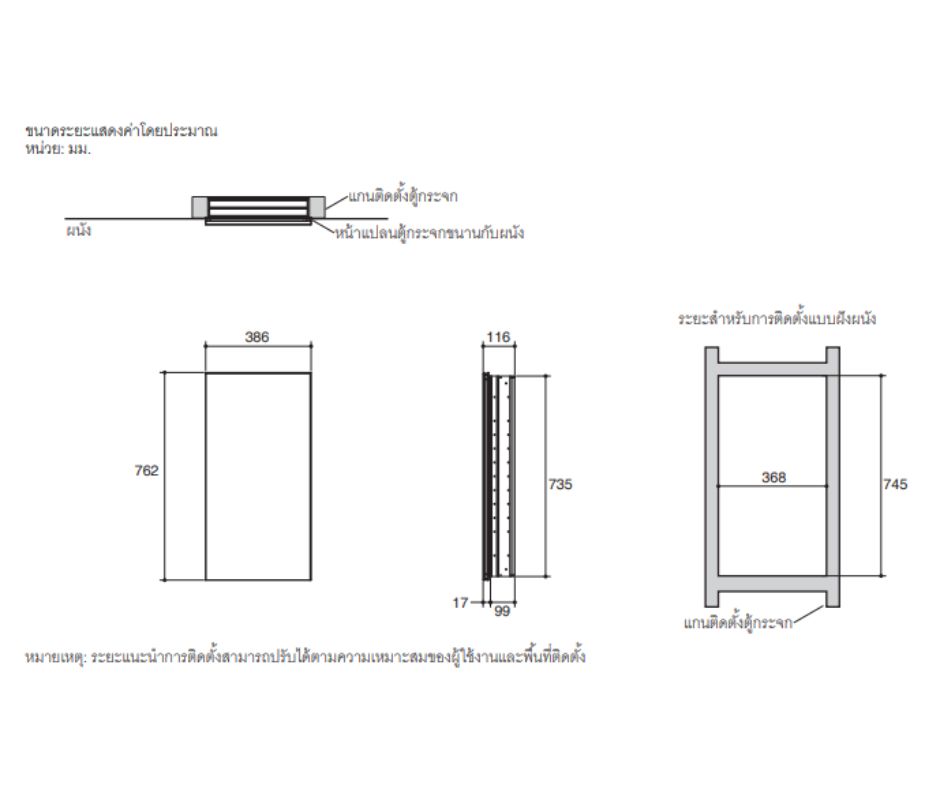 - ติดตั้งแบบฝังผนังหรือแบบแขวน