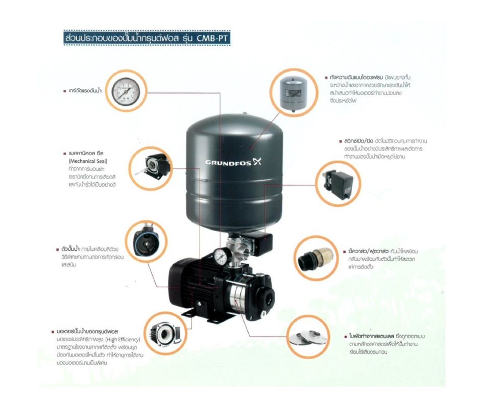 – ปั๊มน้ำอัตโนมัติ GRUNDFOS รุ่น CMB3-37PT 500W