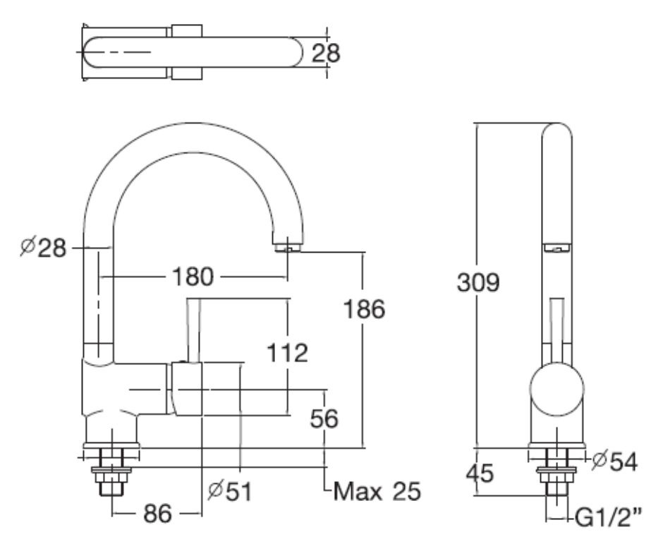 - ความสูงของก๊อก/Height 309 มม.(mm)