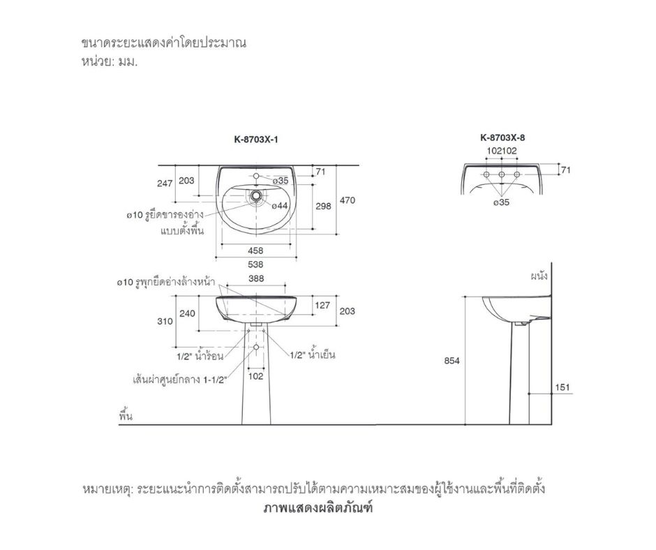 1. ติดตั้งแบบแขวนพร้อมขารองอ่างแบบตั้งพื้น